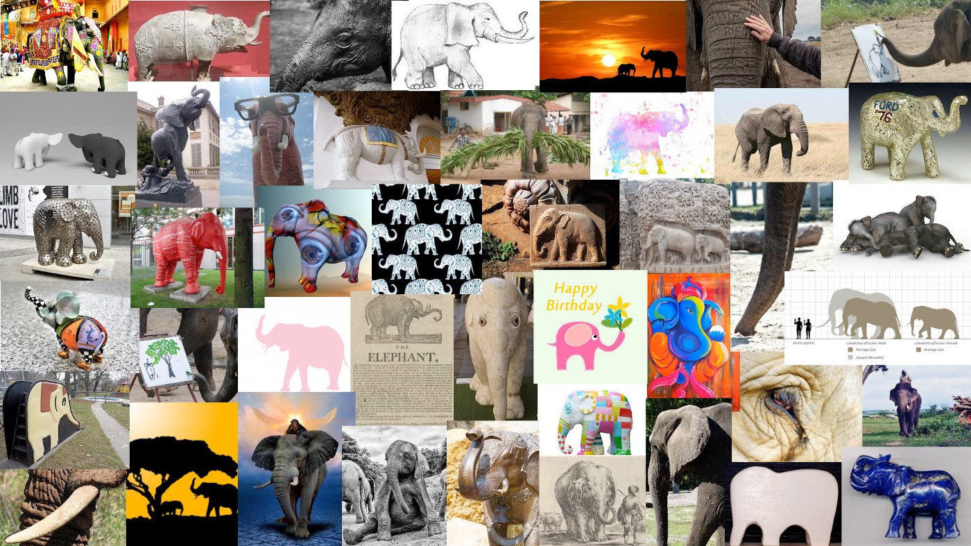 举例:我们尝试通过基于规则的学习方式让计算机识别大象,下图中的大象千差万别, 有的是实物,有的是雕塑,有的是画,我们无法通过创建一套规则的方式让计算机准确识别下面每一头大象, 此时我们需要一种新的方法来解决这类问题。