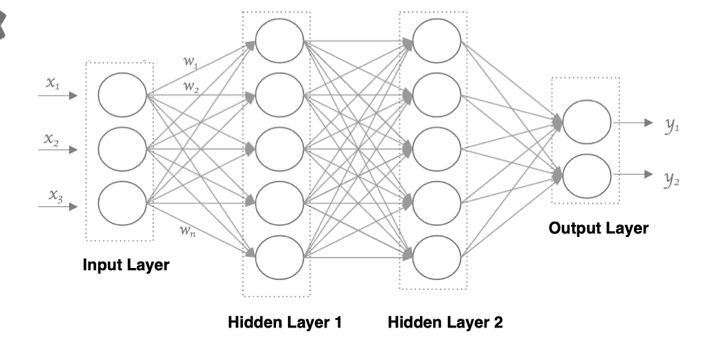 1. 输入层(Input Layer): 即输入x的那一层(如图像、文本、声音等)。每个输入特征对应一个神经元。输入层将数据传递给下一层的神经元。